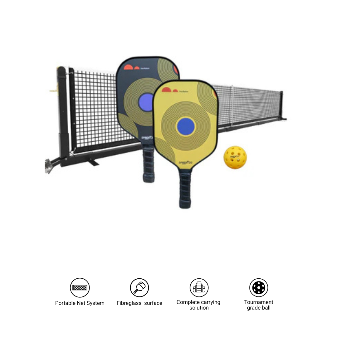 - Premium Sprentzo Fiberglass Paddles: Two high-performance paddles crafted with responsive fiberglass faces that deliver the perfect balance of power and control for players of all levels.
